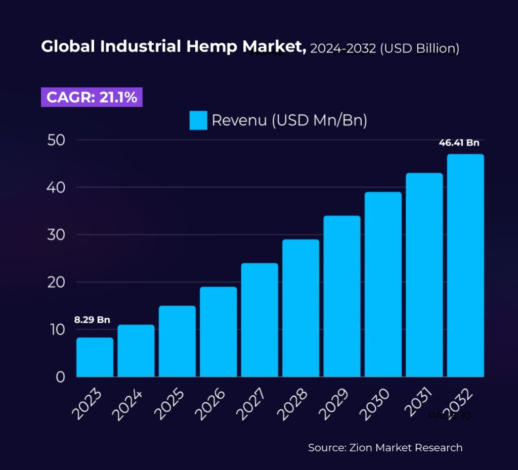 High-Growth Market – Global hemp industry projected to grow from $8.29B in 2023 to $46.41B by 2032 (21% CAGR)